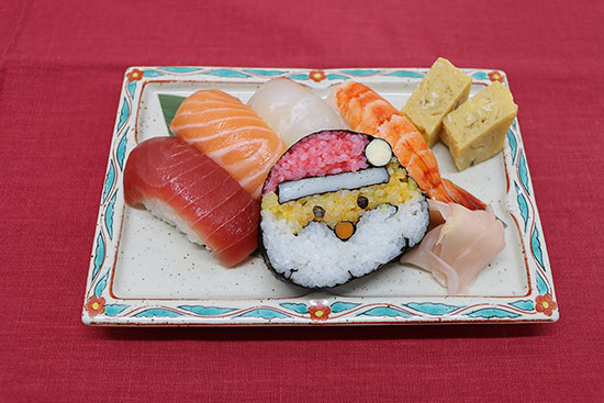 加藤クリニックのクリスマスメニューと言えば、サンタ巻き寿司です。