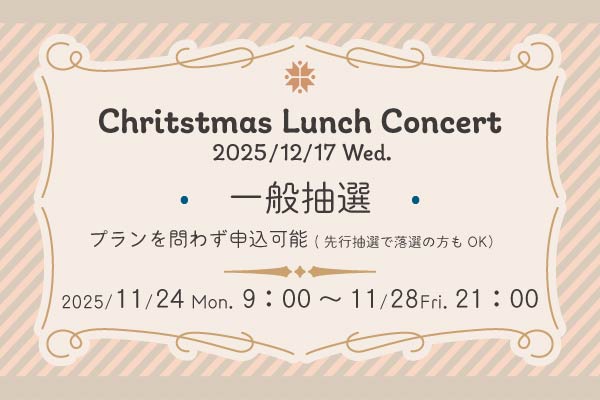クリスマスランチコンサートの一般抽選のお申込みを開始いたします。