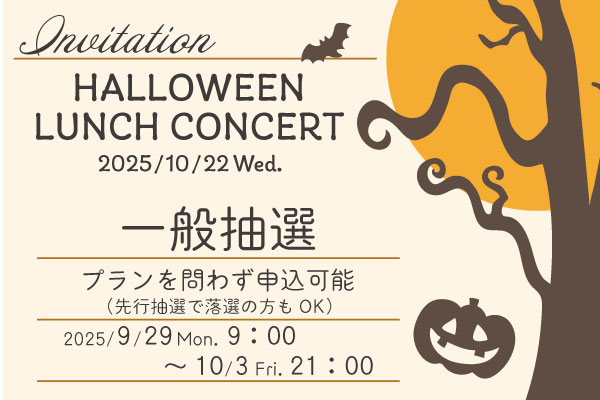 ハロウィンランチコンサートの一般抽選のお申込みを開始いたします。