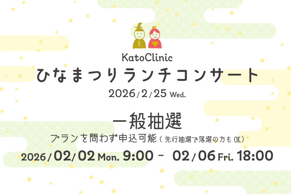 ひなまつりランチコンサートの一般抽選のお申込みを開始いたします。