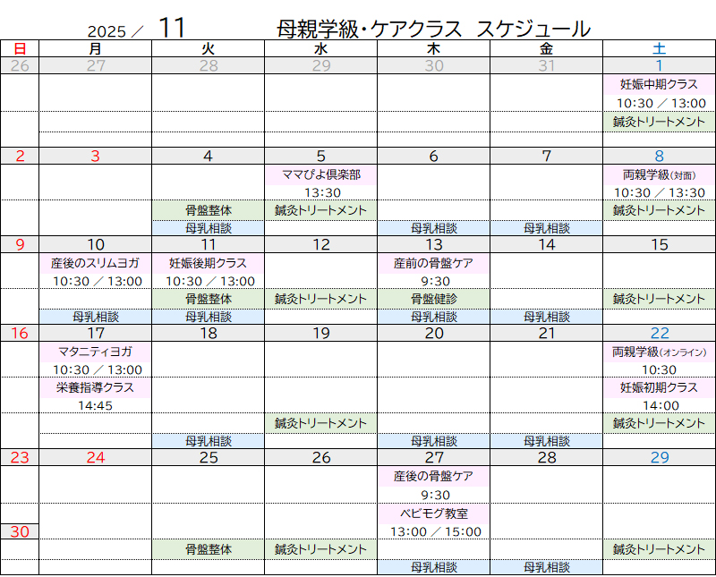 その他、各クラスの詳細は産前産後のサポート・教室のページをご参照下さい。