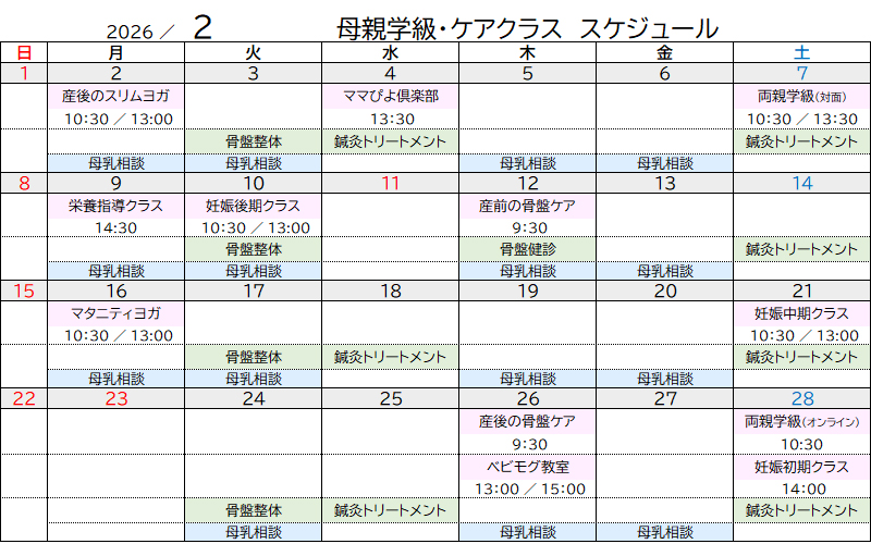【2026年2月】母親学級&ケアクラス