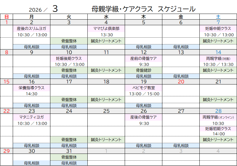 その他、各クラスの詳細は産前産後のサポート・教室のページをご参照下さい。