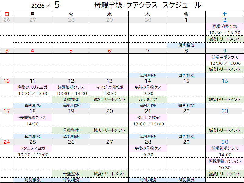 その他、各クラスの詳細は産前産後のサポート・教室のページをご参照下さい。
