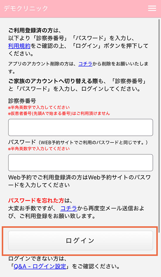 (診察券番号をお持ちの方)予約サイトまたはアットリンクアプリからお手続きください。