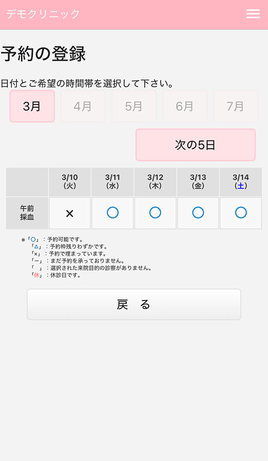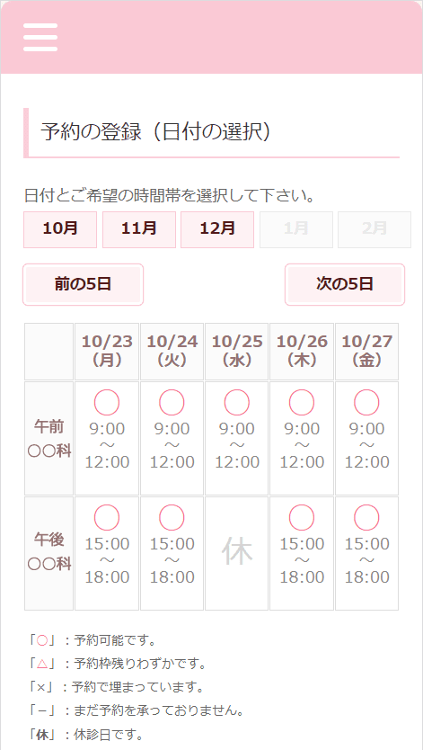- 予約画面で来院希望の日時が表示されません