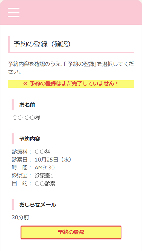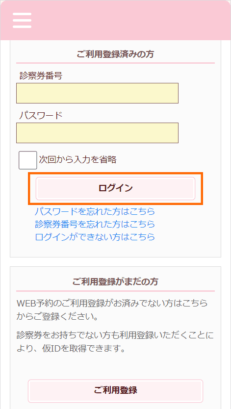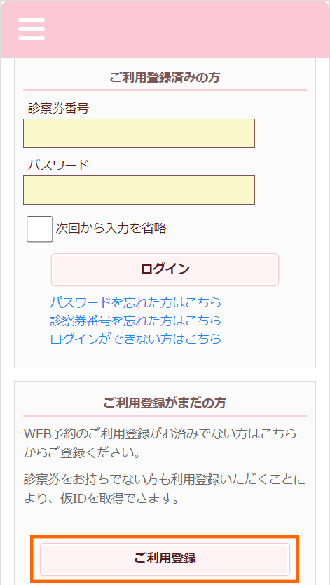 初めてご来院される方予約サイトにアクセスしていただき、初回登録後、仮の番号でのご予約をお願いいたします。